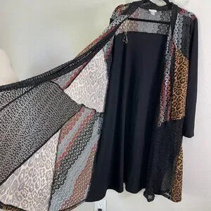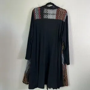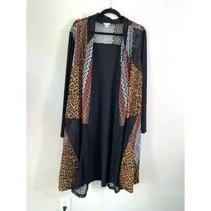 Avenue Womens Plus 26/28 Cardigan Duster Mix Media Animal Print Lace Mid Length