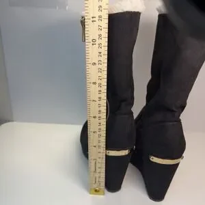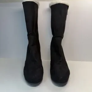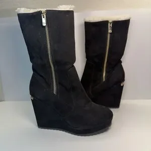 JUICY COUTURE Jckasia Black Suede Faux Fur Lining Mid Calf Wedge Boots Sz 6