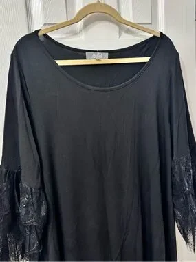 Marled Womens Plus Size 2X Black Lace Bell Sleeve Top
