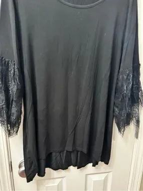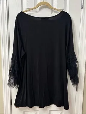 Marled Black Lace Bell Sleeve Top | Size 2X