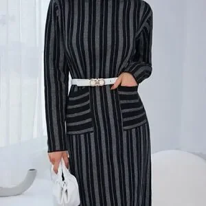 Shein Stripe Pattern Dual Pocket Sweater Dress without belt NWOT size M