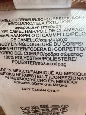 The shell is made of 100% camel hair, a luxury natural fiber known for its warmth and soft, textured feel. Features a high-quality Bemberg lining.