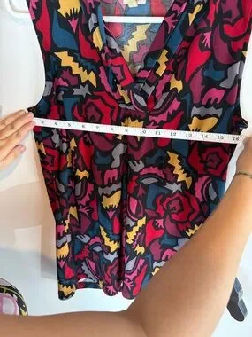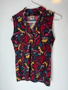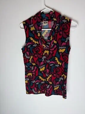 Anne Klein retro 90s abstract print sleeveless blouse with cowl neck.