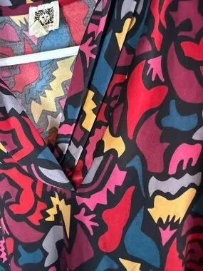 Artsy vintage style multicolor geometric pattern top.