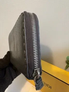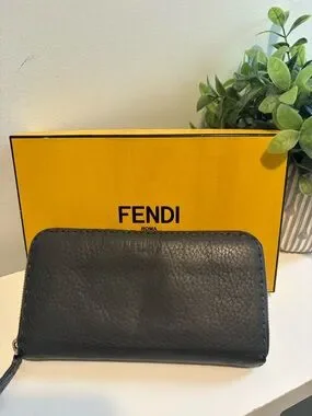 Beautiful authentic Fendi Selleria Black Cuoio Romano Leather Zip-Around Continental Wallet. Great condition overall. There are minor surface scuffs/scratches from normal handling, but no major flaws. Zippers are smooth and fully functional. Comes with box.