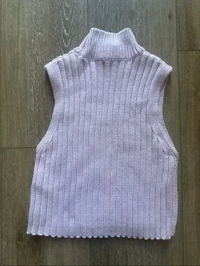 Zara Sleeveless Knit Sweater Womens Light Pink Size S High Neck