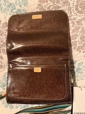 Consuela Ember On the Town Chocolate Brown Sparkle Crossbody with Striped Strap