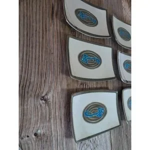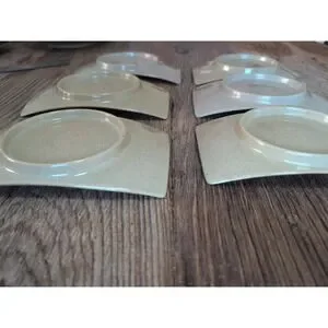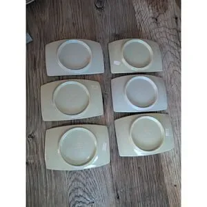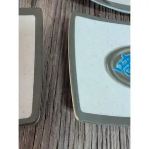 Vintage Style Sushi Plates Set of 6 Speckled Cream Blue Abstract Design