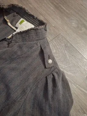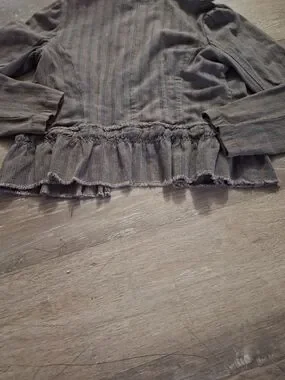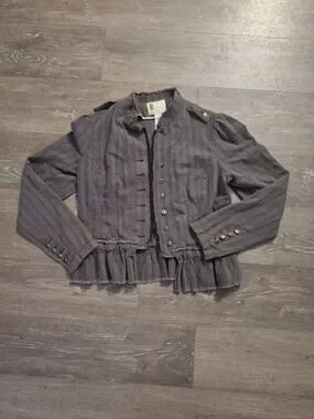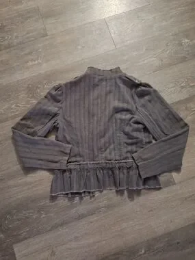 Urban Outfitters Victorian Striped Gray Ruffle Pepulum Hem Cropped Blazer