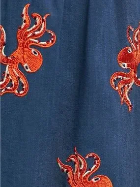 EUC, cute, flirty, fun, comfortable, pull on style, sea life, beach, vacation, mini, summer, embroidery, embroidered, casual, washable, 🐙