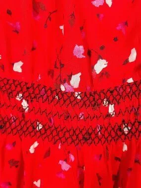 Joie Midi Dress Women's M Red Floral 100% Silk One Shoulder Asymmetrical Hem NWT