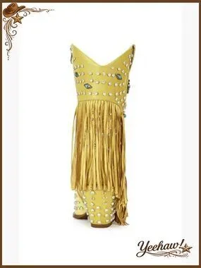 Fringe Cowboy Boots Rhinestone Embellishments Mid Calf Western Booties