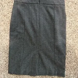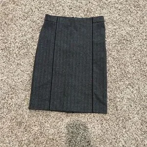 Tailored pencil skirt with front panel seams. Subtle textured fabric for structure. Clean waistband and hidden back zipper. Timeless workwear staple.