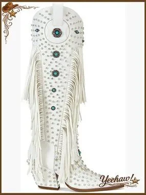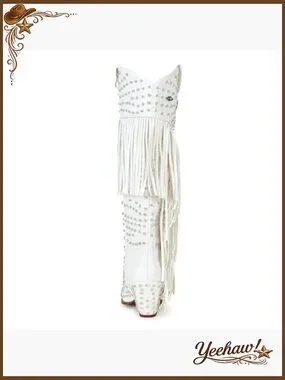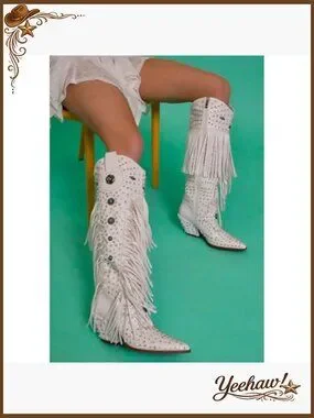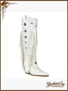 Western Cowgirl Boots with Rhinestones and Fringe, Pointed Toe, Knee-High