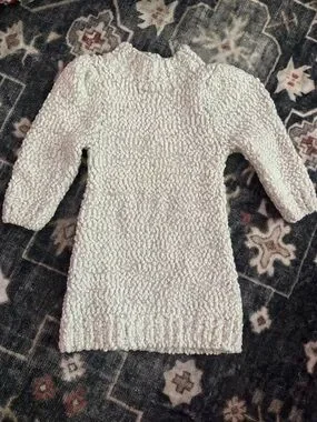 Chunky popcorn knit texture. Fitted silhouette with long sleeves. Soft cream tone for versatile styling. Cozy and casual layer.