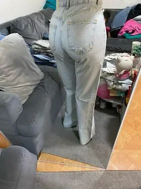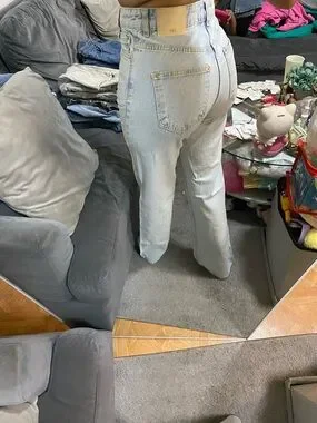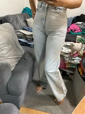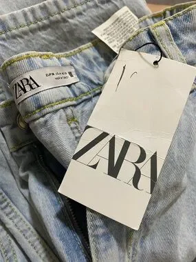 Classic Zara straight-leg jeans with a high waist. Light blue denim with subtle fading. Clean, minimalist design suitable for everyday outfits. Pairs well with casual tops or layered looks.