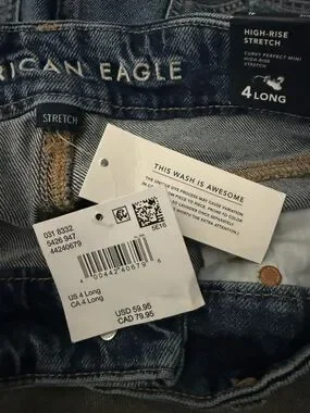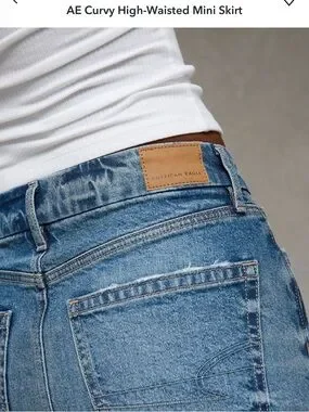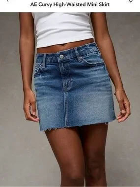 New with tags American Eagle curvy high-rise mini skirt in a classic medium wash denim. Size 4 Long (27W).