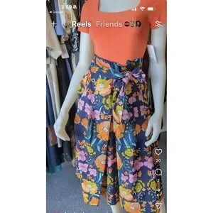 Rear zipper entry. Pleated attached tie waist. Gathered at waist for Paperbag effect. This is 100% cotton. No stretch to the fabric. Tag states size large. For reference my mannequin is a size 8. I believe it to be a best fit on a woman's size 8/10. $178 retail. From Anthropologie in Las Vegas. Consignment item.