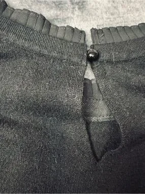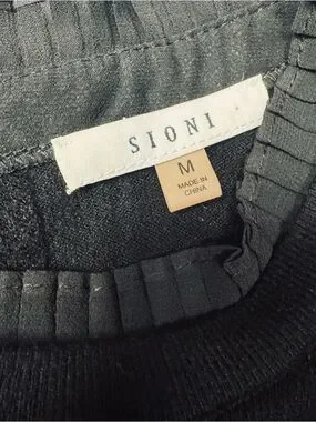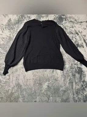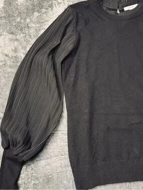 Sioni Black Crewneck Sweater with Pleated Sheer Balloon Sleeves