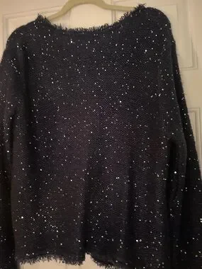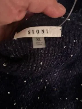 Sioni Deep Navy Sequin Knit Sweater XL
