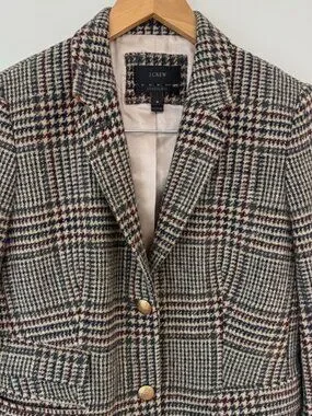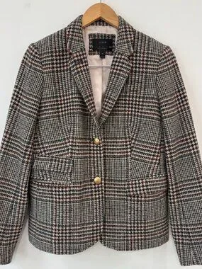 J. Crew Schoolboy Blazer in Houndstooth Tweed 100% Wool Size 8