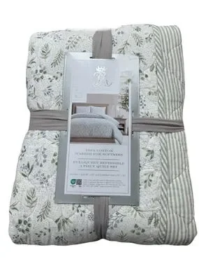 Rachel Ashwell Multicolor Floral Reversible Queen Cotton Quilt Set 88”x92”