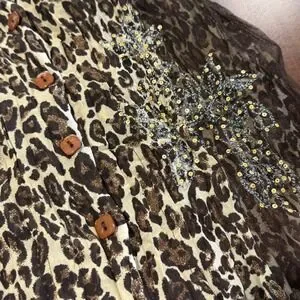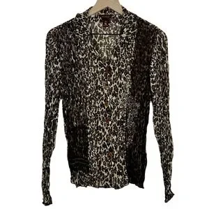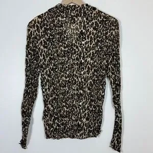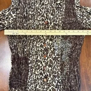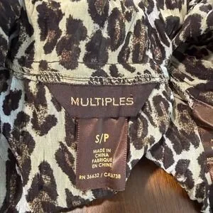 Multiples Women Leopard Print Button Up Shirt Size S Brown Sequin Pleated Blouse