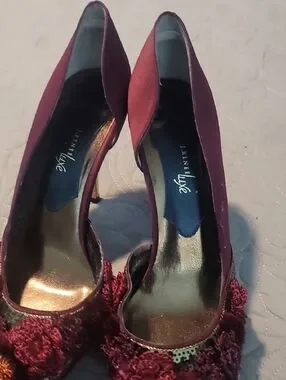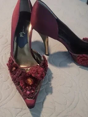 Size 11W J.Renee Burgundy Floral Appliqué Pointed-Toe Heels
