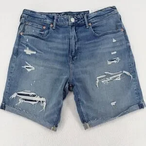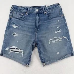 American Eagle AirFlex+ Tencel Distressed Jean Shorts 34 NWT