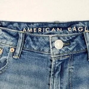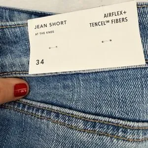 American Eagle AirFlex+ with Tencel™ fibers at-the-knee jean shorts in medium wash with distressed detailing and soft stretch blend. Premium feel fabric with modern fit. High-demand size 34. New with tags.