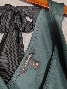 Banana republic Mini Dress Women's XS Forest Green V-Neck Back Tie Minimalist
