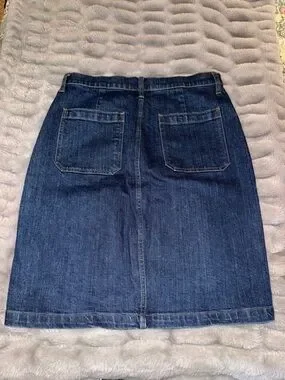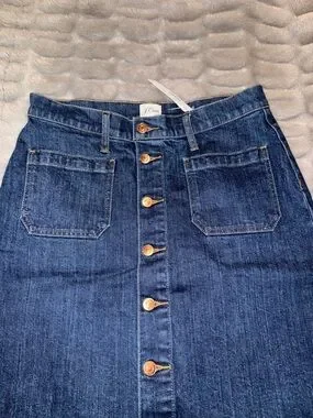 J. Crew High-Rise Dark Blue Denim Pencil Skirt with Front Buttons