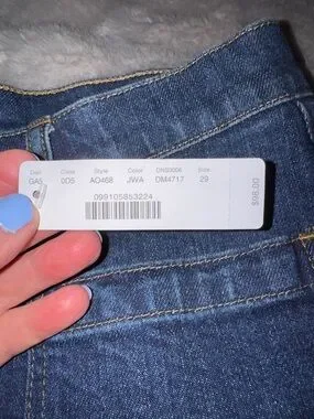 Dark blue denim pencil skirt with a high-rise fit and front button closure. Features two front patch pockets and belt loops for styling. Sturdy denim fabric with a clean, versatile silhouette for casual or dressed-up looks.