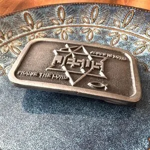 This belt buckle is both a meaningful statement of faith and a collectible piece of vintage craftsmanship, perfect for wear or display.