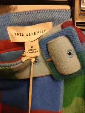 Free Assembly plaid mini skirt in blue, red and green. Soft woven fabric with a belted waist for a tailored fit. Vibrant colorblocking creates a modern, versatile look for everyday wear.