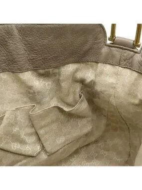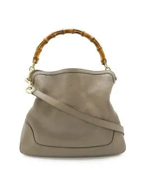 Gucci Bamboo 2-Way Shoulder Bag Crossbody Leather Grey Gold