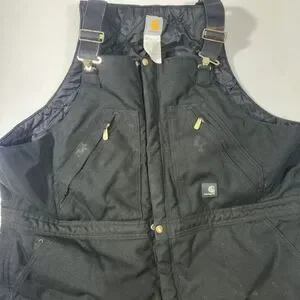 Carhartt Dungarees Adult 46x32 Black Overalls Quilted Duck Bib Double Knee Mens