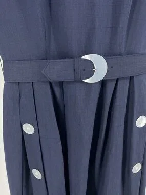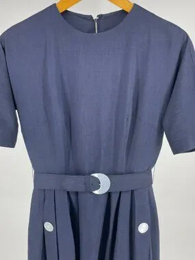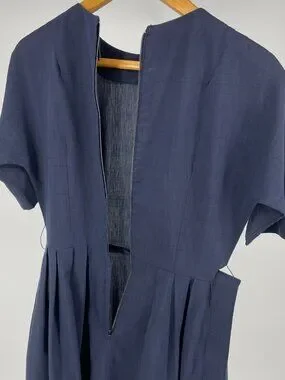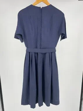 Vintage 60s Blue Fit & Flare Midi Dress Union Made Metal Zipper Retro S/M