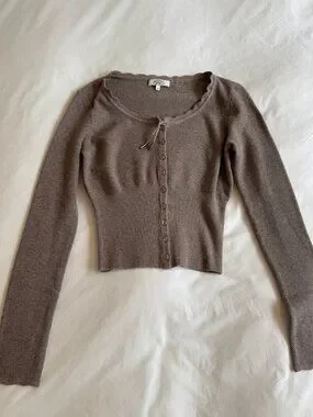 Mirror palais brown cardigan with scalloped trim and buttons