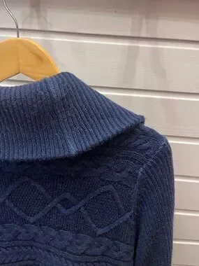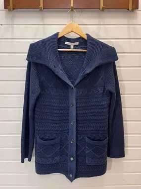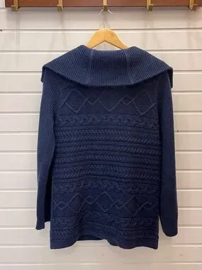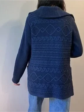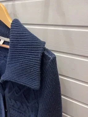 Nordstrom Collection Navy Cable Knit Cardigan Size L Sailor Collar Button-Up