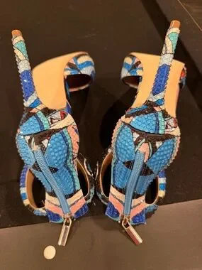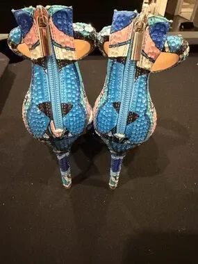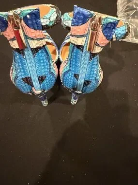 Steve Madden Blue Turquoise Pink Embellished Ankle-Strap Pointed Pump