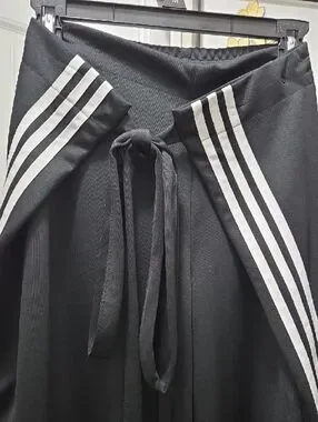 adidas Black Wide-Leg Culotte Track Wrap Around Shorts White Stripes