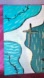 Abstract Coastal Cross Canvas Wall Art in Teal, Gold and Cream