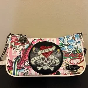 Brand new with tags Ed Hardy White & Pink "Love Kills Slowly" Baguette Bag and Wristlet Wallet Set