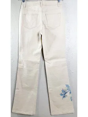 Coldwater Creek Sz 4 ( Actual 29x31) Beige Blue Flowers Bootcut Jeans EUC