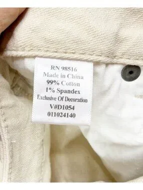 The product is a pair of women's bootcut jeans by Coldwater Creek in size 4 (with actual measurements of 29x31 inches). The jeans feature a beige color with blue floral patterns, made from a cotton blend material. This stylish and trendy pair of jeans is perfect for any casual outfit, adding a touch of floral charm to your wardrobe.
