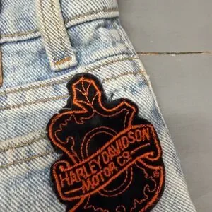Keywords: Vintage, 90s, Biker, Americana, Grunge, Streetwear, Workwear, Relaxed Fit, Tapered, Light Wash, Harley Davidson, Made in USA, Denim, Retro