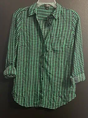 The Limited Ashton Navy & Green Geometric Button-Up Shirt