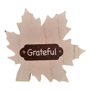 Charming leaf-shaped decor with 'Grateful' inscription. Perfect for home decoration.