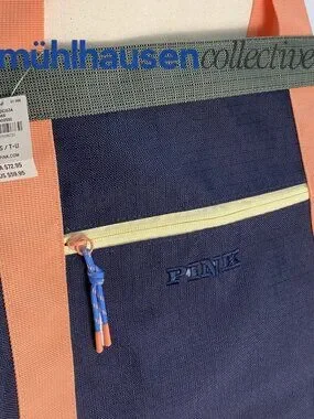 Brand new Victoria’s Secret PINK oversized tote in a bold navy + coral combo with sporty details. This thing is huge—perfect for gym days, beach trips, overnight stays, or just carrying your entire life around.